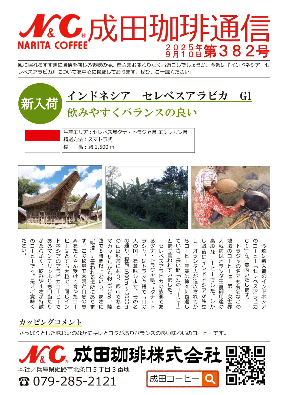 成田珈琲通信 第382号 インドネシア セレベスアラビカ G1