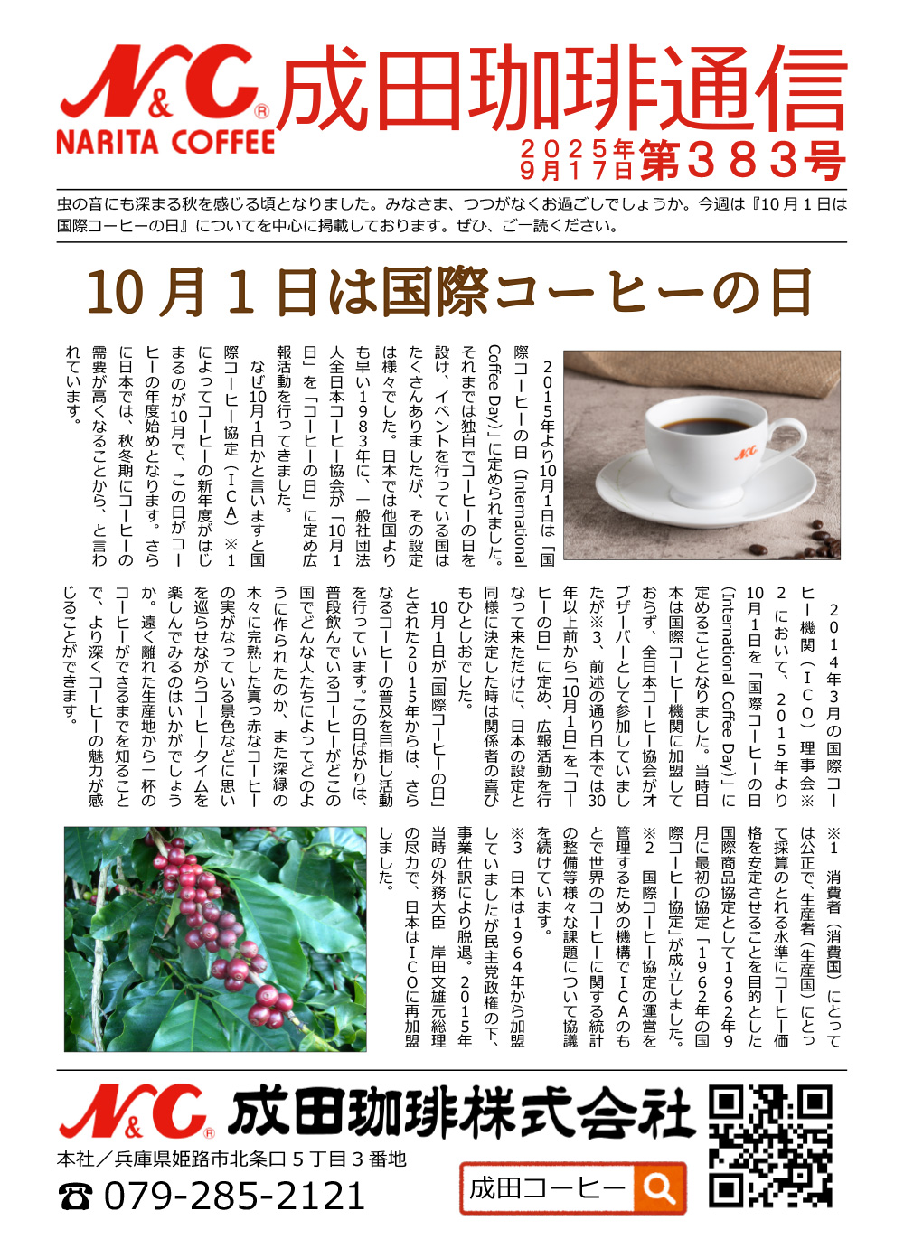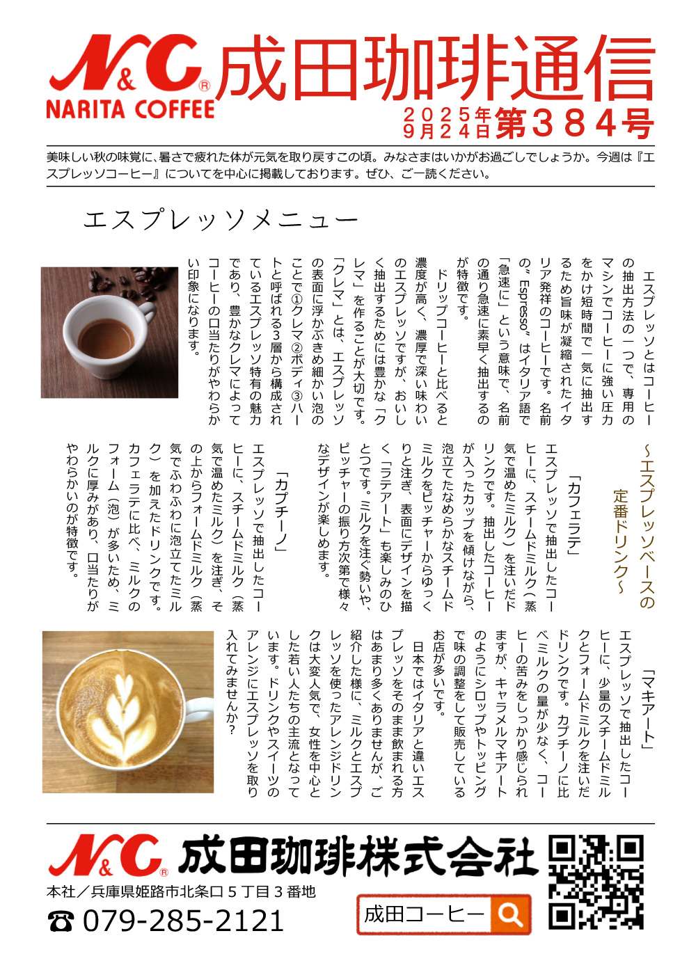 Narita Coffee Communication 成田珈琲通信はお得意先向けに発行している情報誌です