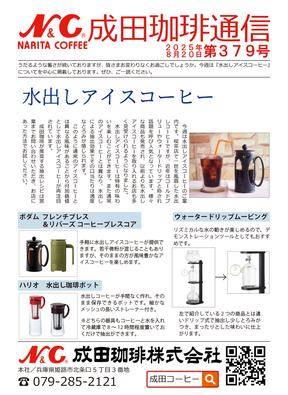 成田珈琲通信 第379号 水出しアイスコーヒー