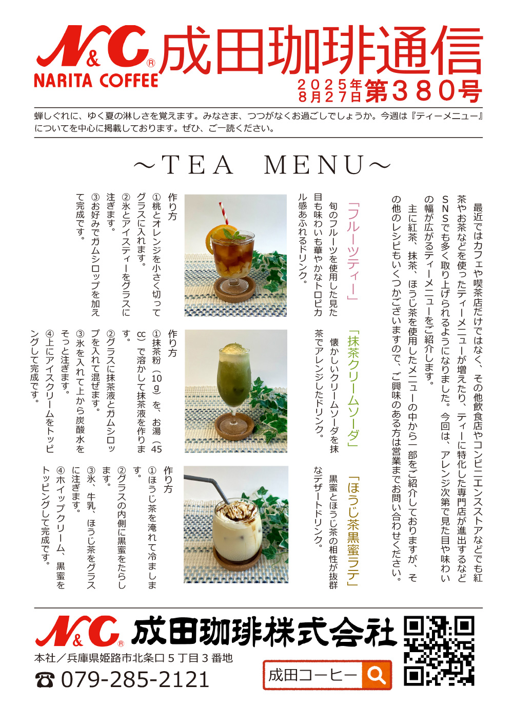成田珈琲通信 第342号 秋冬シグニチャードリンクレシピ
