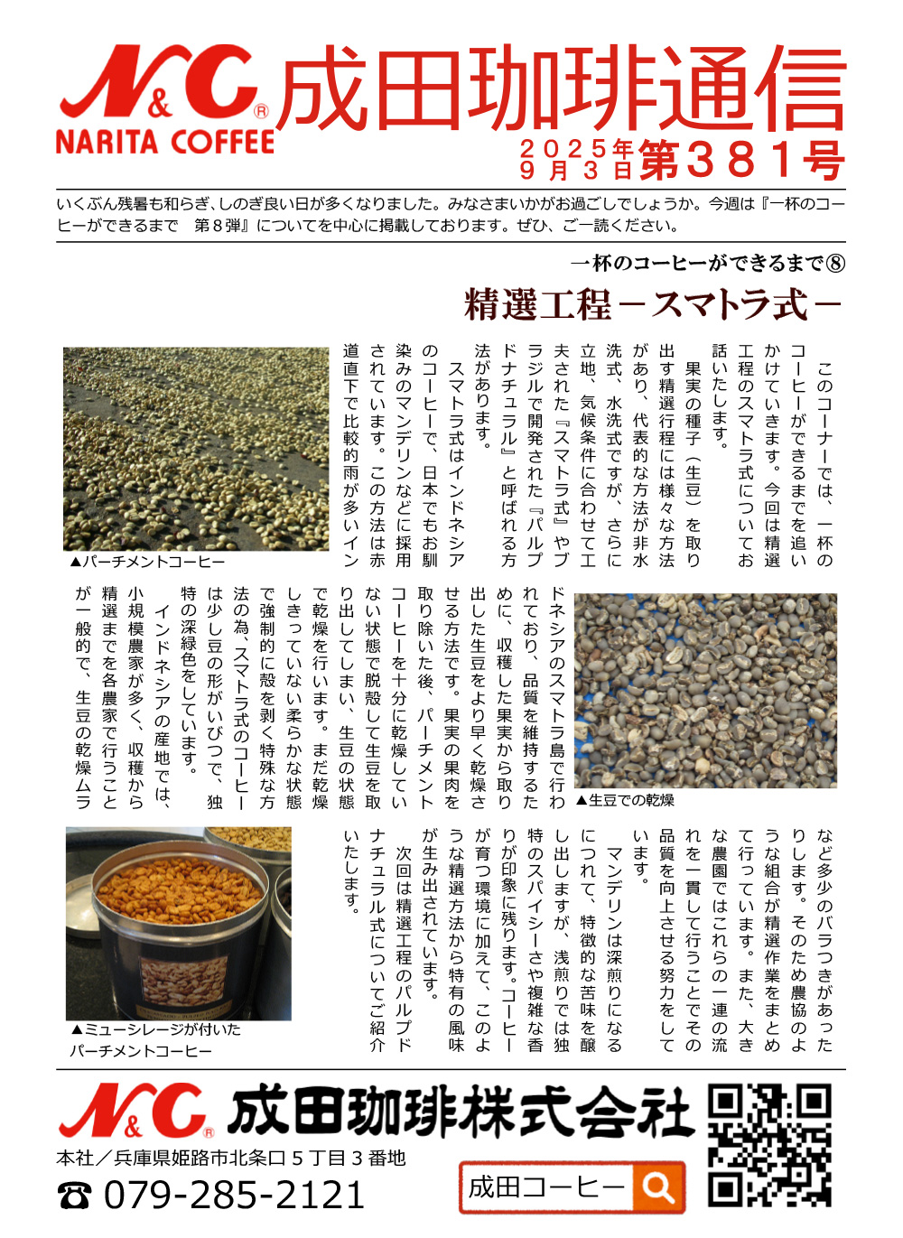 成田珈琲通信 第381号 一杯のコーヒーが出来るまで⑧